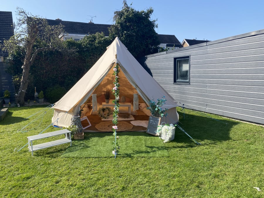 Neutral Floral Theme Bell Tent Hire (YOU MUST SELECT THE BASE UNIT BEFORE ORDERING)