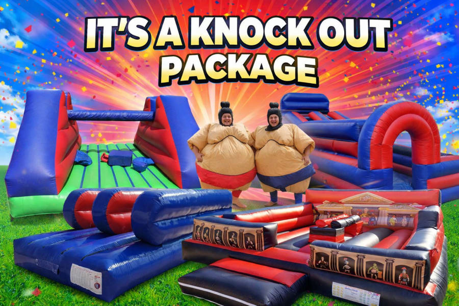 Here We Have A High Energy Traditional Red Vs Blue Team Its A Knock Out Package. This Package Is Perfectly Designed For A Team Building Exercise's Or For A Stag Do / Hen Party Perhaps! Each Inflatable Is Designed To 2 People To Compete Against Each Other In A Explosive Filled High Energised Competition!